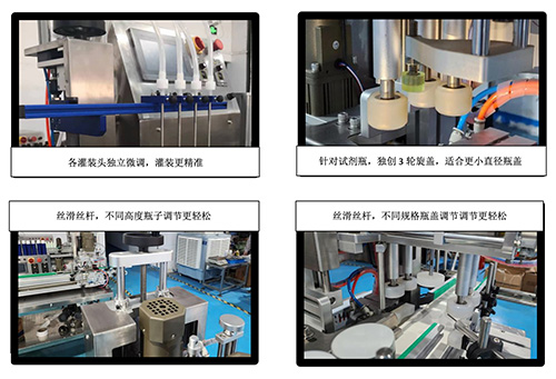 灌裝和旋蓋部分可通過手柄轉(zhuǎn)盤直接調(diào)整高度 |