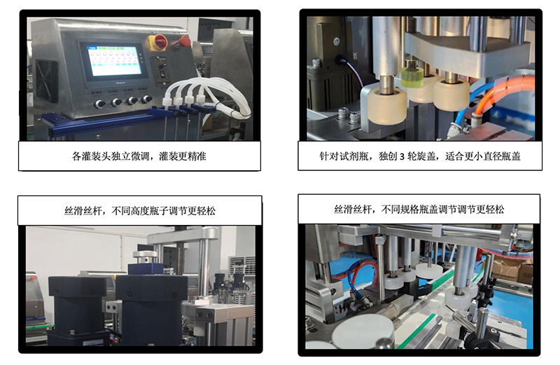 灌裝和旋蓋部分可通過手柄轉(zhuǎn)盤直接調(diào)整高度 |